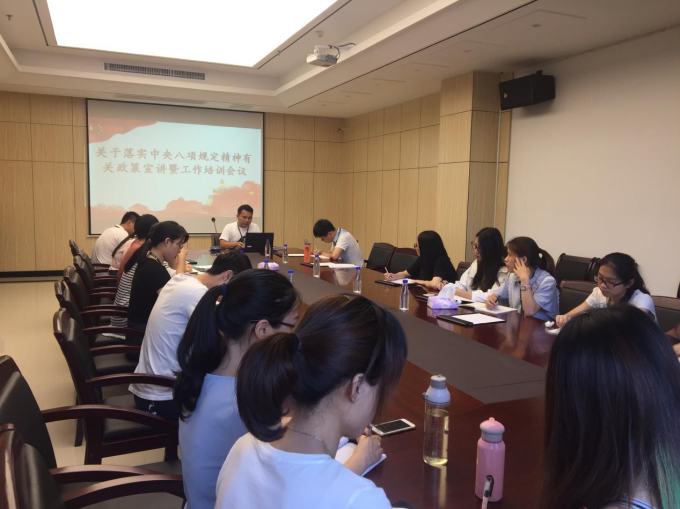 为深入贯彻落实中央八项规定精神,6月1日,黑料不打烊 举办中央八项规定精神有关政策宣讲暨工作培训会,重点对差旅费、会议费、培训费、劳务费、工资福利、津贴补贴、公务用车、机关食堂、党建经费使用以及公务接待等落实中央八项规定精神配套制度进行宣讲和培训。
