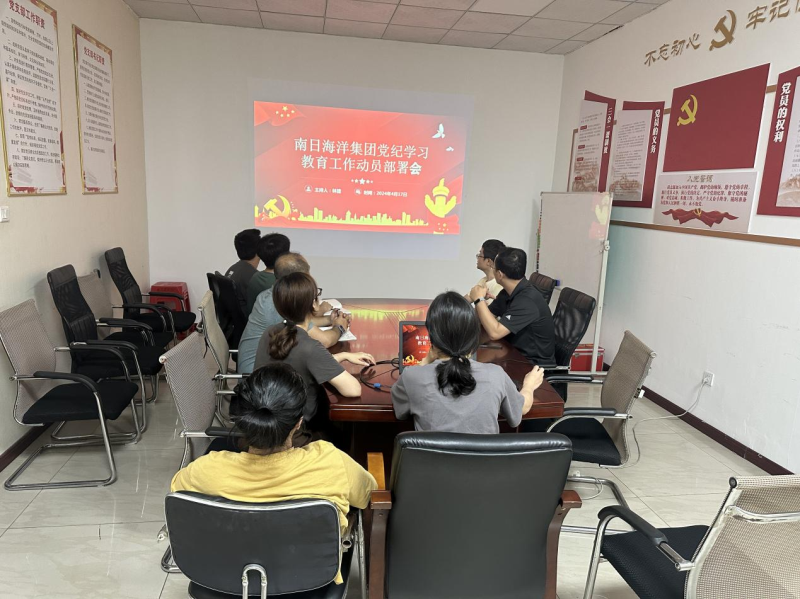 南日海洋集团党支部 4月17日下午,南日海洋集团党支部书记林捷同志主持召开支部党员大会,部署党纪学习教育工作。会议强调,一要强化思想认识,自觉把政治建设摆在首位,深刻领会开展党纪学习教育的重大意义,切实把思想和行动统一到党中央决策部署上来。二要强化理解把握,要把党纪学习教育的相关内容融入日常、抓在经常,深化党纪党规体系学习,不断强化对党纪律规定的理解和把握,推动党纪学习教育入脑入心见行。三要强化责任担当,加强作风和效能建设,认真履行好岗位职责,要严守廉政底线,严格执行中央八项规定,树立廉洁、高效的良好形象。