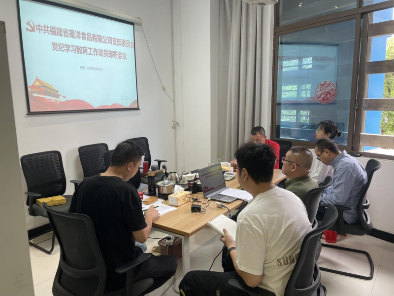 4月17日下午,科技公司党支部书记陈珍华同志主持召开动员会议,部署党纪学习教育工作。会议强调,一要夯实思想,严抓纪律。坚持集中学习与个人自学相结合,把学习党规党纪与学习党的创新理论紧密结合起来,逐章逐条学,逐字逐句悟,推动《条例》学习入脑入心、走深走实。二要聚焦主业,谋实项目。坚持把党纪学习教育与企业发展工作衔接融合贯通,着力营造风清气正的政治生态、干事创业的良好环境,积蓄高质量发展新动能。三要创新突破,凝聚合力。推进信息化、数字化、智慧化建设,将数字化管理的理念、方法、措施等融入到各项工作中。通过数字赋能释放智慧监督新效能,提高“清廉国企”智治水平。 莆洋食品公司党支部 4月18日上午,莆洋食品公司党支部书记张智勇主持召开中共莆洋食品党支部动员部署会议,全面部署党纪学习教育工作。会议重点强调,一要提高对党纪学习教育的认识,确保每位党员都深刻理解其重要性;二要制定详细的学习计划,确保党纪学习教育工作有序进行;三要加强实践运用,将党纪学习成果转化为实际行动,推动支部工作的全面提升。