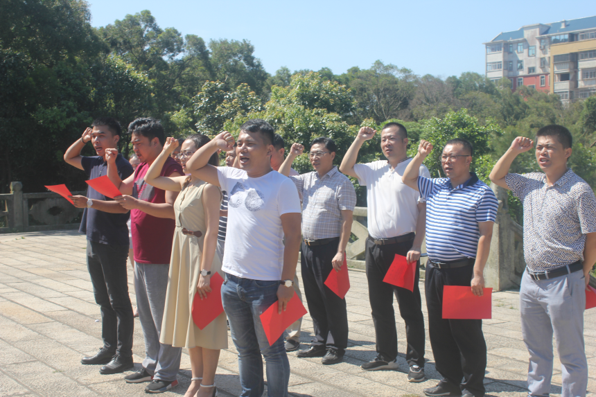 6月29日,莆田市南日集团党支部前往南日岛烈士纪念碑等地开展纪念建党96周年主题党日活动。本次活动主题是“坚守初心,聚力南日,拼创美丽莆田”,由党支部书记林超雄主持,支部党员和入党积极分子共15人参加。 当天,同志们来到南日岛烈士纪念碑,向英雄战士们默哀并敬献花篮,深切缅怀坚韧不拔、勇于牺牲的红色精神。在烈士纪念碑前,四名预备党员在领誓人的带领下,面向党旗宣读入党誓词,参加活动的正式党员也通过重温誓词,深化党员身份意识,铭记党员的义务和使命。