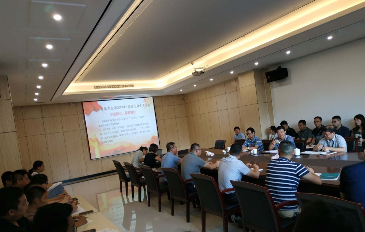 开展以“不忘初心,砥砺前行”为主题的党日活动。活动由集团党支部副书记、总经理李新洪主持,集团党支部委员、副总经理李靖,倪成威等40多名党员参加。