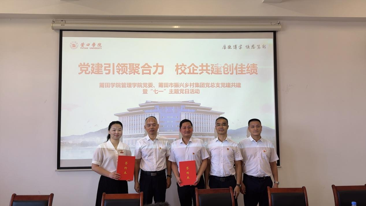 随后,双方就进一步加强校企党建共建合作达成共识。一方面,对接双方开展专题党建调研、理论学习交流互促活动、开展社会实践和志愿服务活动;另一方面,双方发挥优势资源,互邀专家开展理论宣讲、政策辅导,促进双方党员对乡村振兴各项政策的深入了解,更好地推动乡村振兴的治理能力和人才培育。 在全体与会人员的见证下,莆田学院管理学院党委与黑料不打烊 党总支签订了《党建共建协议书》,并进行了“大学生校外实习基地”授匾仪式。校企双方将建立常态化沟通交流机制,积极探索“党建引领、教育赋能、产业驱动”的乡村振兴新模式,着力构建校地协同发展新生态。