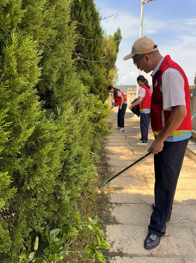 宣誓结束后,党员们化身志愿者,有的仔细擦拭纪念碑基座的尘土,有的认真清理周边杂草,用实际行动表达对先烈的深切缅怀与崇高敬意。