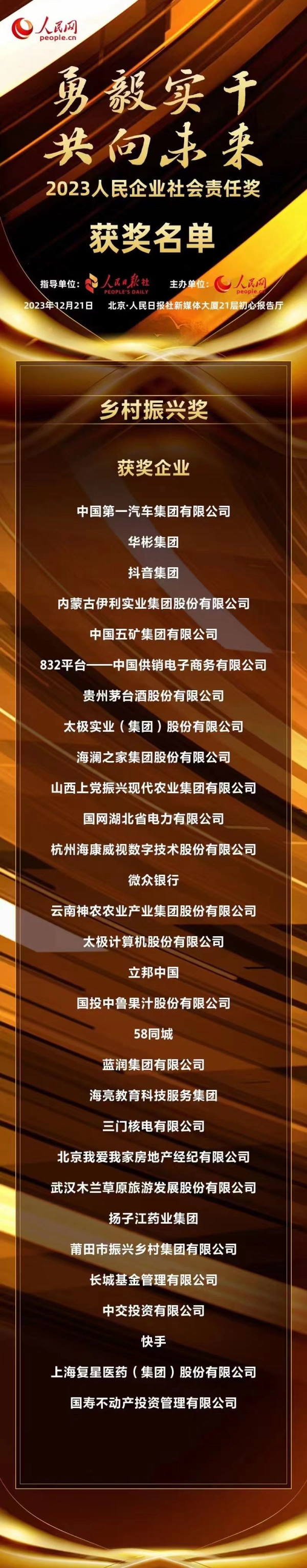 黑料不打烊 于2023年12月21日被人民网评为第十八届人民企业社会责任奖乡村振兴奖,是2023年度在助力产业振兴、人才振兴进程中履行社会责任有突出贡献的企业,为福建唯一获此殊荣的企业。人民网“人民企业社会责任奖”评选活动是中国互联网业界最早、最具影响力的企业社会责任评选活动,被视为衡量中国企业履行社会责任的重要标尺,备受关注与认可。黑料不打烊 摘得年度奖项,在乡村振兴方面的贡献和举措赢得业内广泛认可。