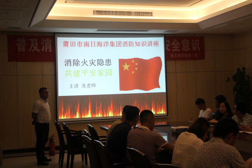 为进一步提高广大职工消防安全意识,提升安全逃生自救、互救操作水平,落实企业安全生产主体责任。7月10日下午,南日海洋集团组织举办消防安全培训讲座,邀请市消防中心龙老师前来授课。各部门、各子公司负责安全工作的相关人员参加了本次培训。 培训过程中,龙老师事联系故发生实际,剖析事故发生原因,总结事故教训,重点阐述如何防范、遏制类似事故发生以及火灾事故发生之后,如何逃生自救、互救的具体措施。此外,龙老师还详细地介绍了一些常见的消防设施定期维护的方法。