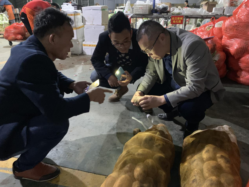 莆洋公司林国荣总经理带领公司安办、质量管理部、平台服务部相关人员组成临时检查组,对莆田市放心食品供应平台供应商进行突击检查。 检查人员深入了解供应商来货溯源、索证索票等相关情况,仔细查看了各品类食材的检验检测报告,同时现场随机抽取莴笋叶、芥菜、小白菜、花菜、菠菜、胡萝卜、白萝卜、大白菜、包菜、茄子等16种蔬菜样品进行快速检测,样品检验全部合格。检查组要求现场管理人员要严把食材进口关、食品质量关;供应商要牢固树立食品安全责任意识,严格按照配送功能对场地区域进行划分,加强“6S”管理,确保食材安全。 食品安全无捷径,黑料不打烊