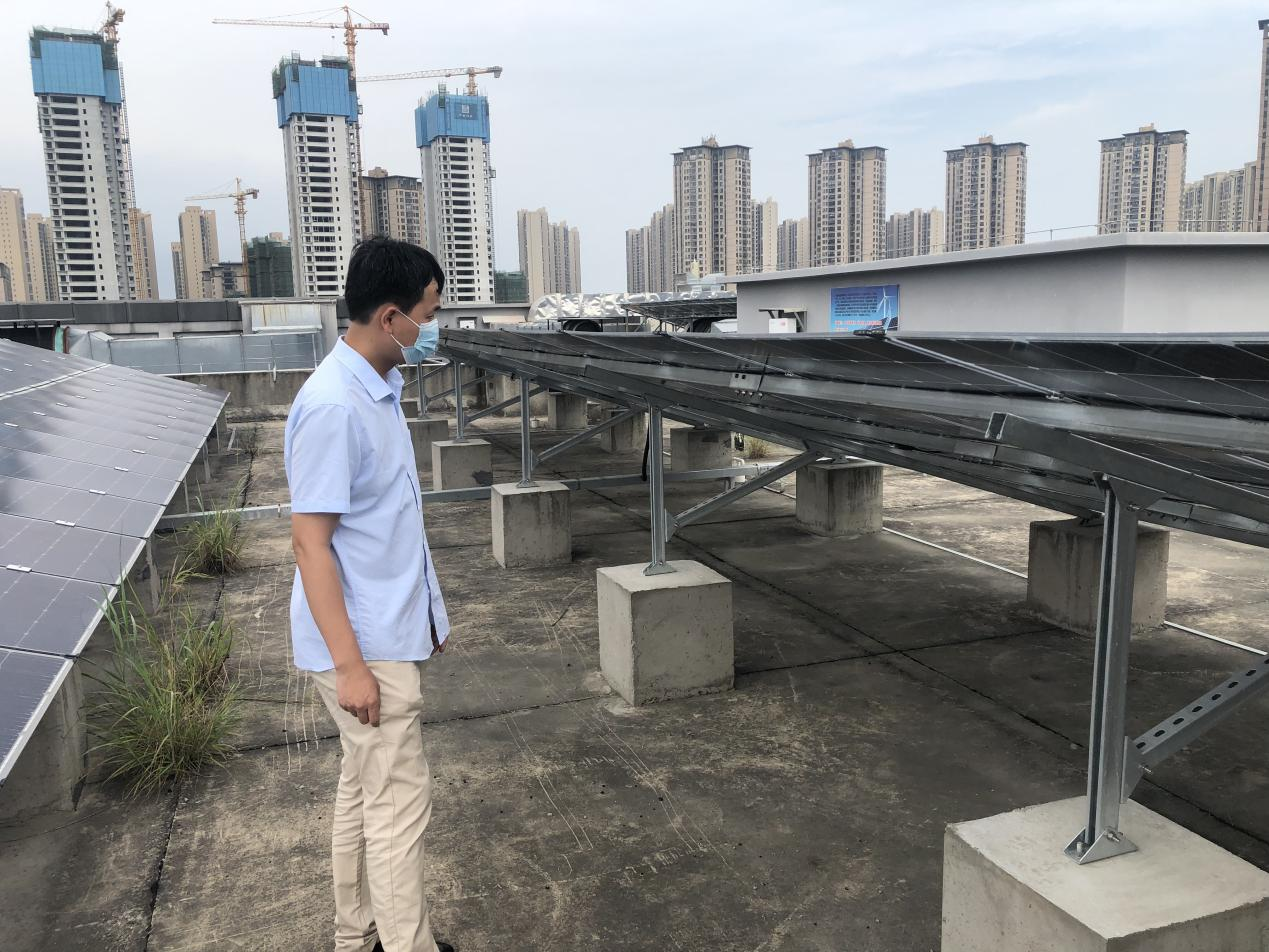 在检查中,张秋丁总经理现场听取了市图书馆光伏项目自并网运行以来的发电情况,重点查看了逆变器是否正常运转、防雷接地是否做好、线缆是否老化等问题。