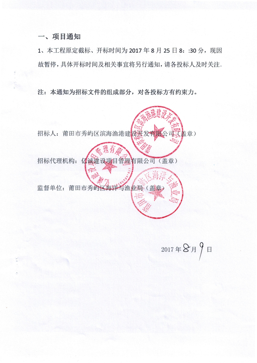 福建省莆田市秀屿区东岱三级渔港工程项目通知