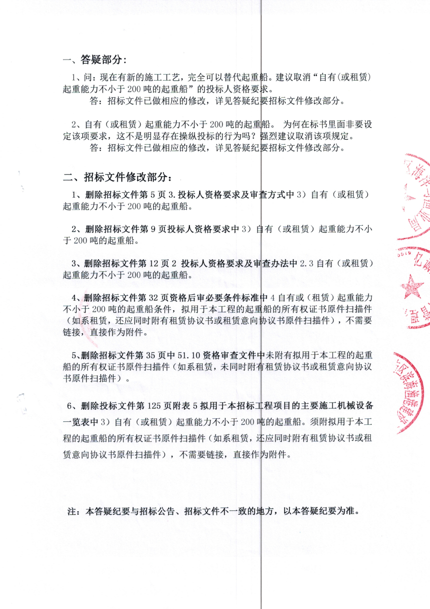 福建省莆田市秀屿区东岱三级渔港工程答疑纪要