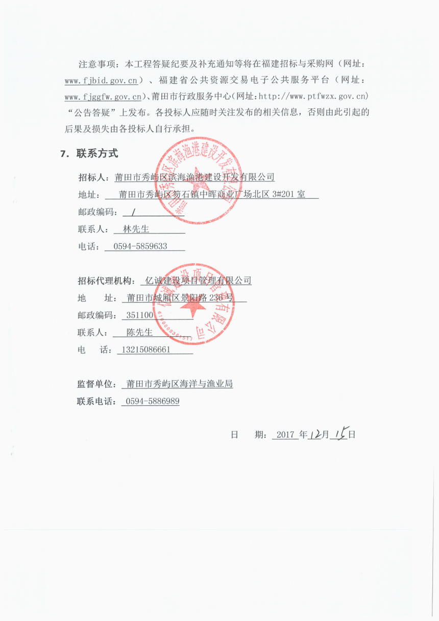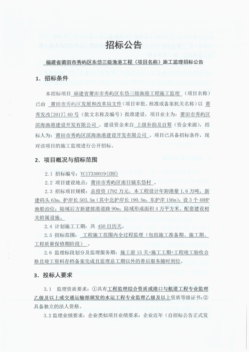附件:福建省莆田市秀屿区东岱三级渔港工程施工监理招标文件