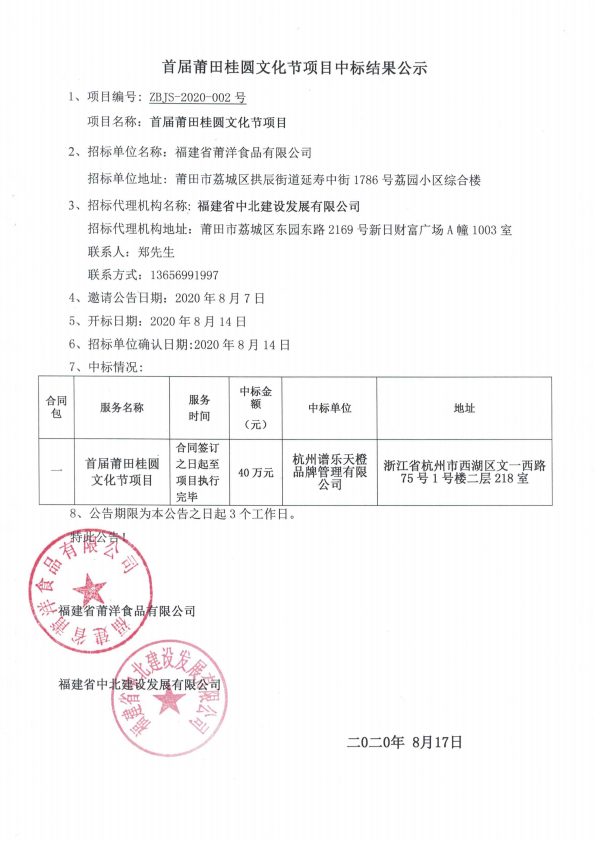首届莆田桂圆文化节项目中标结果公示