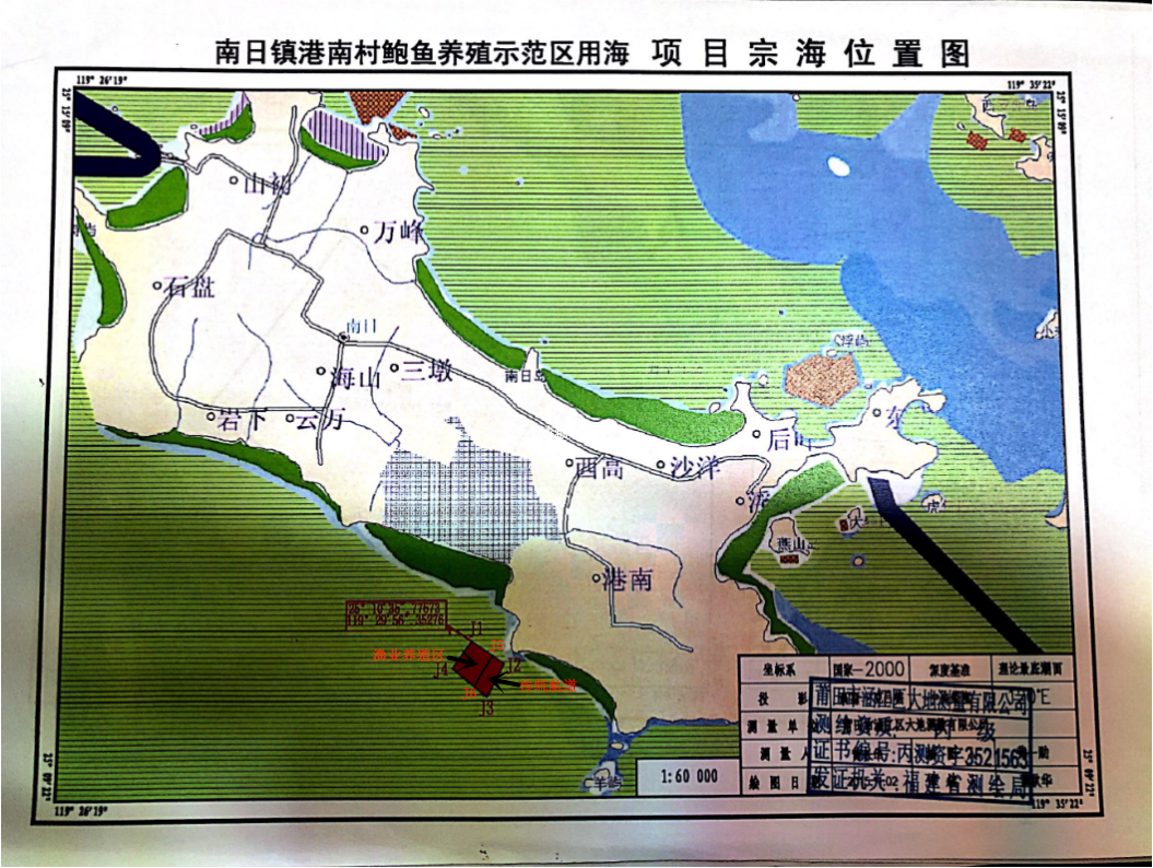 我司拟对南日镇港南村鲍养殖示范区海域进行公开招租,现欢迎具有资格的意向承租人前来参与竞价。 1、项目名称:南日镇港南村鲍养殖示范区海域招租 2、招租目的:为了有效利用南日镇港南村鲍养殖示范区海域,最大限度地发挥南日镇港南村鲍养殖示范区海域的效益。 3、项目位置及规模:本次招租的海域位于南日镇港南村鲍养殖示范区内。 招租海域规模:400亩 具体详见宗海界址图