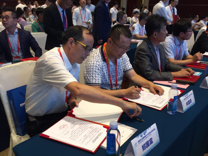 2017年6月18日,南日集团总经理李新洪带领有关人员参加第十五届中国·海峡项目成果交易会。在交易会上分别与中国科学院海西研究院周盛宗团队、福建水产研究所签订了《智慧海洋渔业服务平台建设》、《福建港湾蓝色粮仓可持续发展关键技术与装备开发——景观型塑胶养鲍渔排设计与生态养殖应用示范》合作协议。