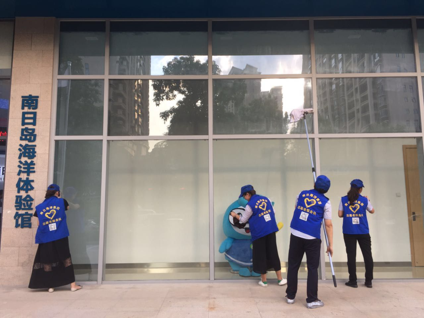 ![]() 志愿者们自发清洁办公楼外墙,提升市容市貌