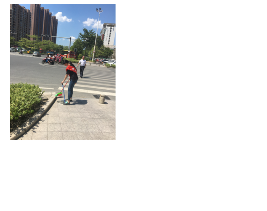 ![]() ![]() 志愿者们不惧烈日在市区交通要道上清洁路面卫生
