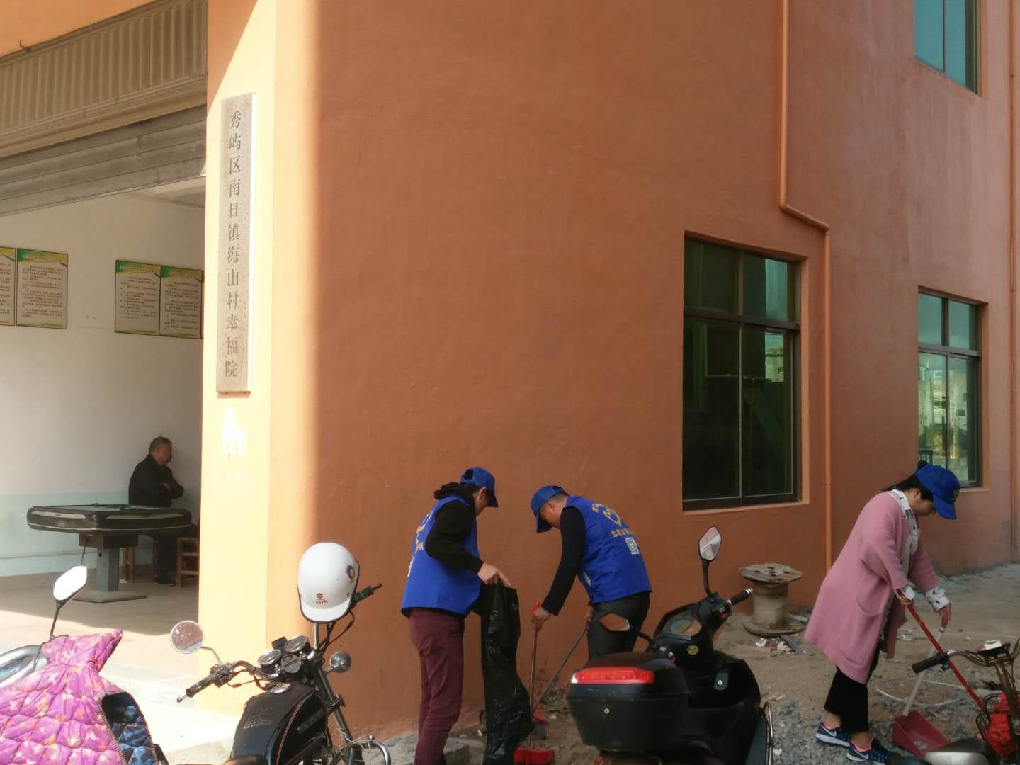 志愿者们在南日镇海山村老年活动中心开展“关爱老人,清理卫生”活动