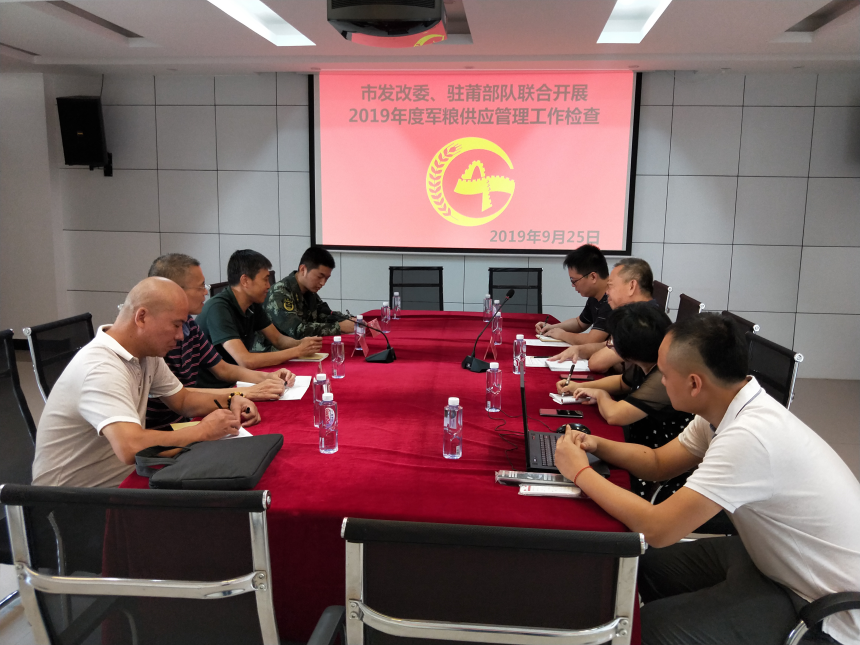 9月25日上午,市发改委和驻莆部队组成联合检查组深入市军供站,围绕军粮供应管理工作规范化,对政策执行、购粮手续、证卡管理、军粮质量管理和优质服务、品种串换和专项资金、资金管理等6个方面展开军地联合检查。