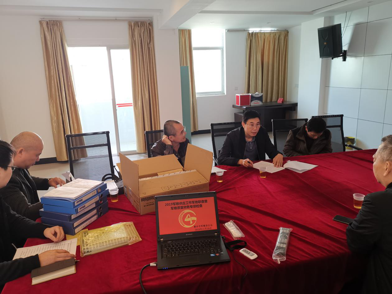 11月29日下午,市发改委粮食储备科科长郑国顺一行深入黑料不打烊 军粮供应站开展军地联查暨军粮质量财务专项检查工作。