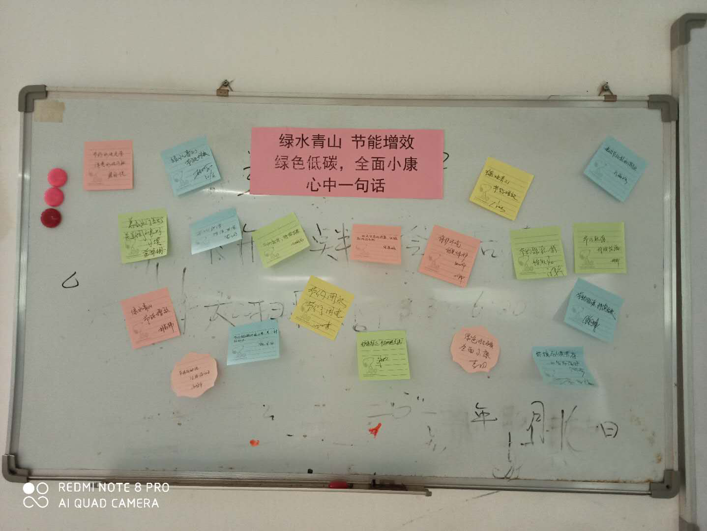 为持续推进全国节能宣传周和全国低碳日系列活动深入开展,按照上级关于开展2020年全国节能宣传周和全国低碳日活动的工作部署和要求,在全司营造良好的节能降碳氛围。7月2日下午,在我司发起“绿色低碳 节能增效”倡议书和“绿色低碳 节能增效”心中的一句话活动。