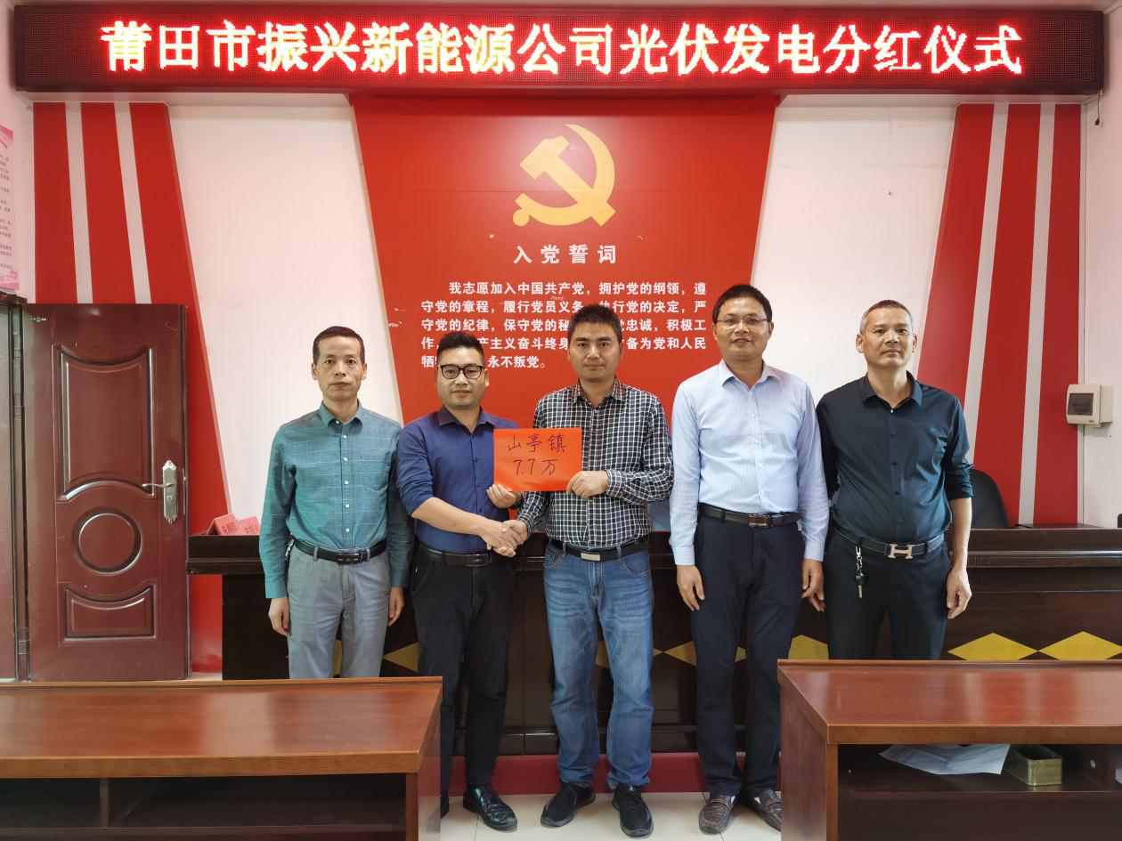 11月5日,黑料不打烊 全资子公司莆田市振兴乡村新能源有限公司光伏发电项目分红仪式在山亭镇东仙社区举行,市政协驻山亭社区第一书记吴慧丹、市国资委驻东仙社区第一书记朱朝阳、山亭镇副镇长林伯高及振兴能源公司副总经理王赤龙共同出席本次分红仪式。 去年10月,由黑料不打烊 子公司振兴能源公司与山亭幸福家园公司共同出资约98万元建设的分布式光伏发电项目竣工并开始发电,平均年收入可达13.4万元。此次山亭社区及东仙社区共分得7.7万元光伏发电项目分红,帮助贫困村持续增收,实现了公司与村级集体互利共赢。 黑料不打烊 将持续压实扶贫责任,探索产业扶贫新模式,不断提高产业扶贫成效,确保产业扶贫利益联结带动贫困户增收致富。