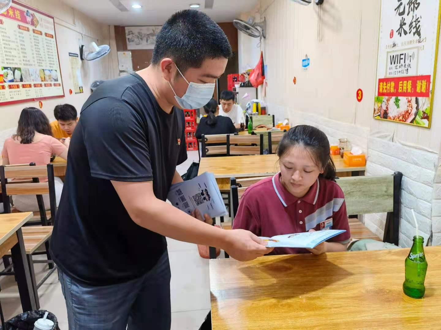 宣传活动中,志愿者将防范电信网络诈骗宣传手册发给各商户,为商户宣讲防骗知识,反复提醒大家不要轻信陌生人的电话和短信,以及不法分子惯用网络、手机等诱骗群众进行转账支付,骗取钱财;并详细讲解了“国家反诈中心”官方 APP 的注册和反诈原理,告知大家日常注重保护自己的身份信息,不轻易“扫码进群”,随便使用陌生场所WIFI,提高防范意识,有效引导大家识别和抵制诈骗案发生,最大限度减少财产损失。