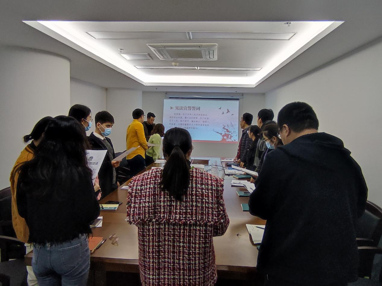 12月3日上午,振兴投资公司开展宪法宣誓活动,全体员工在公司负责人朱卿的领誓下,面向宪法许下铿锵誓言,全场声音铿锵有力、掷地有声,生动诠释了公司员工对宪法的敬畏之心。随后,振兴投资公司组织员工观看宪法宣传片、法制教育片等短视频,通过典型的案例分析,以案普法,用科学立法、严格执法、公正司法、全民守法的准则来规范约束员工行为。最后,振兴投资公司采用悬挂横幅和宪法知识问卷等形式,扩大宪法影响力。