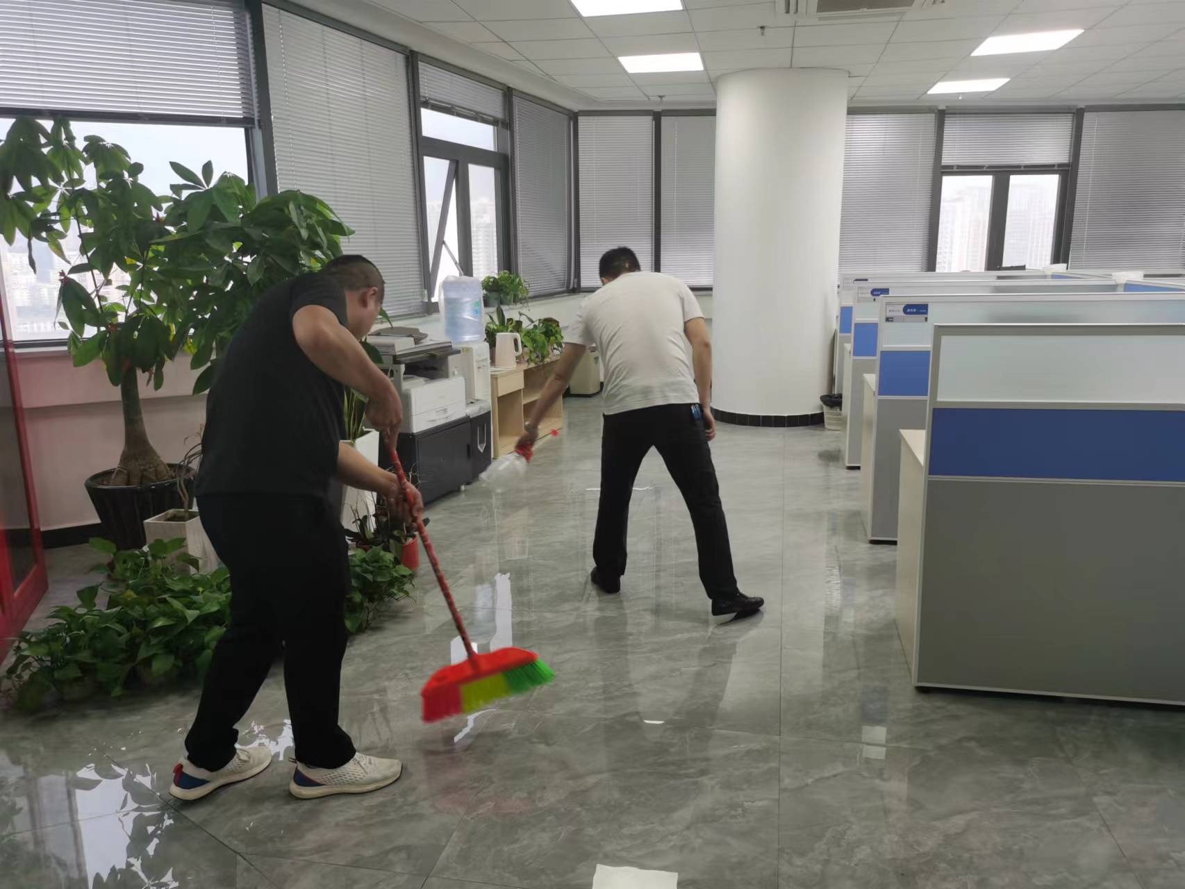 助力城市文明创建工作活动走深走实,6月21日下午,振兴投资公司组织全体员工开展办公区域卫生大扫除活动。