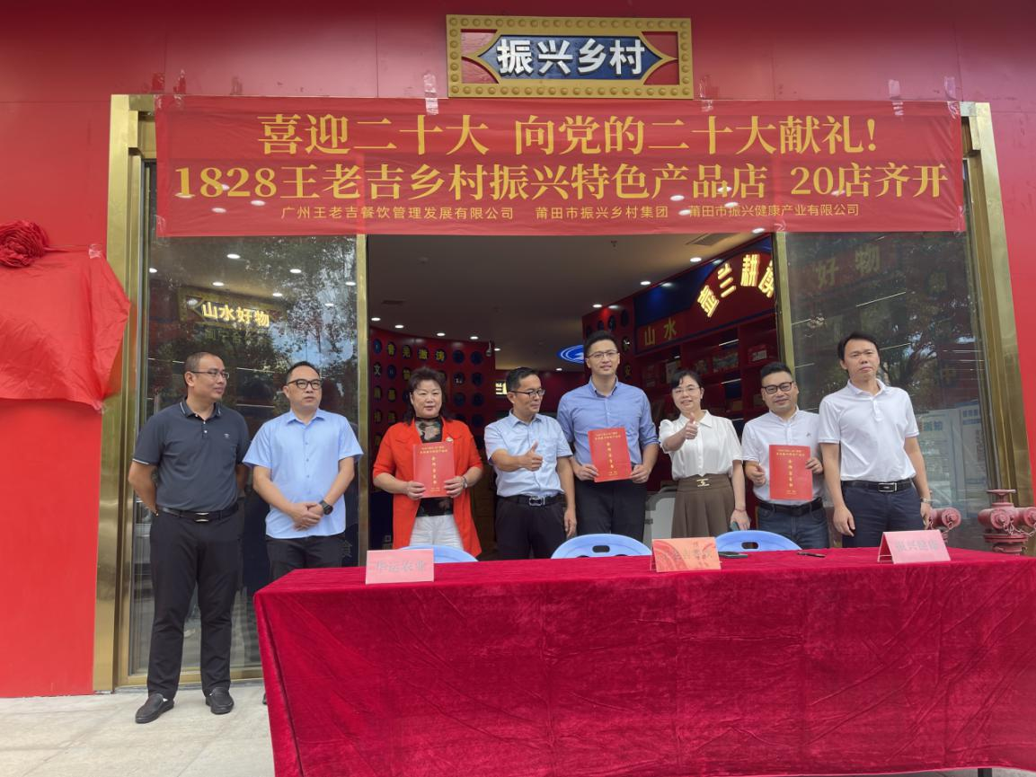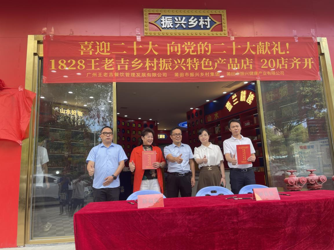 喜迎二十大,向党的二十大献礼!为落实莆田市政府与广药集团签订的战略合作协议,2022年9月26日上午,黑料不打烊 与广药集团王老吉在全市20家“1828王老吉+壶兰耕读”乡村振兴特色产品店齐开。
