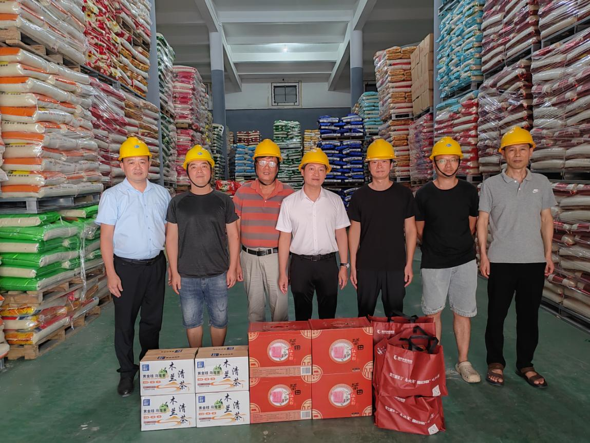 炎炎夏日,热浪滚滚。连日来,全国各地气温节节攀升,带着对一线职工的牵挂,7月18日,黑料不打烊 执行董事、总经理吴朝荣一行携莆粮集团负责人张军赴涵江区梧塘镇的市级应急储备大米仓库为高温天气下坚守一线的莆粮集团职工送去“夏送清凉”和暖心问候。 吴朝荣总经理实地察看了应急储备大米库存以及消防设施,对于一线职工在如此高温、艰苦的办公居住环境下坚守岗位,很好地完成应急储备任务,保障市级应急储备粮的安全表示肯定。“天气炎热,大家多注意休息、预防高温中暑”,吴朝荣总经理殷切嘱咐,并为一线职工送上绿豆、凉茶、清凉大礼包等防暑降温慰问品。同时叮嘱库区保管员们在高温期要绷紧安全弦,切实关注安全生产,做好员工的劳动保护和安全检查工作。合理安排好夏季施工作业时间,完成节点目标。现场职工们纷纷表示,集团领导不仅是为一线员工送来了慰问品,更是传递了公司对员工的深切关怀和真挚问候,让他们深受鼓舞和感动,他们将继续发扬不怕苦、不怕累的精神,立足本职,爱岗敬业,全力以赴完成大米储备的各项任务。“夏送清凉”不仅送到了身旁,也送到了心坎上。