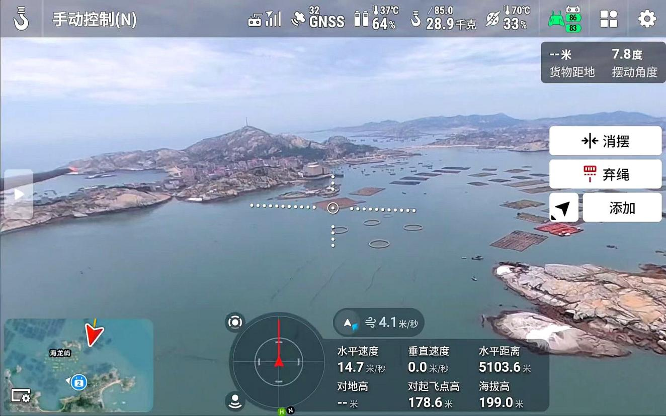 9月2日,市木兰集团在南日岛海域实施的无人机跨岛海鲜运输及海岛养殖空中投喂测试,取得显著成效。其搭载新鲜海产的无人机从鳌屿吊运至东岱码头仅用时7分钟,20亩养虾池饵料投喂作业仅用时5分钟,有效破解了海岛物流难题,提升了海岛养殖质效,为进一步提升海洋经济综合实力、激发蓝色经济活力提供了创新思路和技术路径。