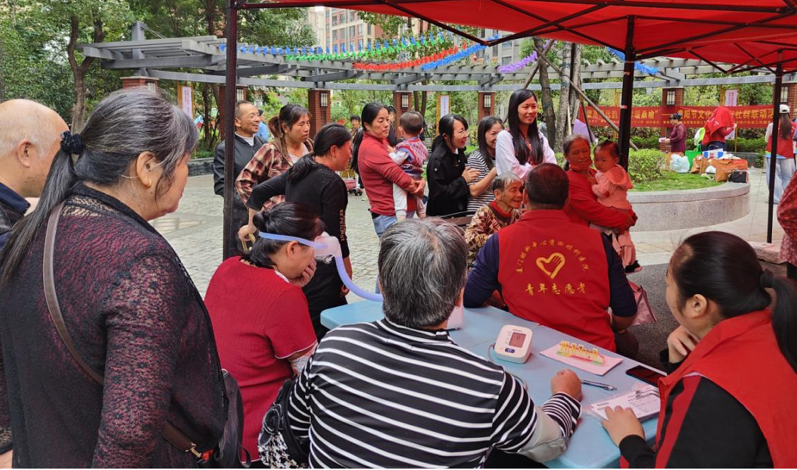 义诊服务进现场,健康关怀零距离 活动现场专设的义诊区前排起了长队,市眼科医院、国欢镇卫生院的医务人员穿着白大褂忙碌不停。“阿姨您坐好,头稍微抬一点,我给您测视力。”眼科医生一边调试仪器一边轻声叮嘱,另一侧的护士正细致地为长者测量血压,还不忘在记录本上标注注意事项。刚做完眼睛熏蒸的李阿姨舒心地说:“不用去医院就能做检查、问问题,这服务太周到了!”