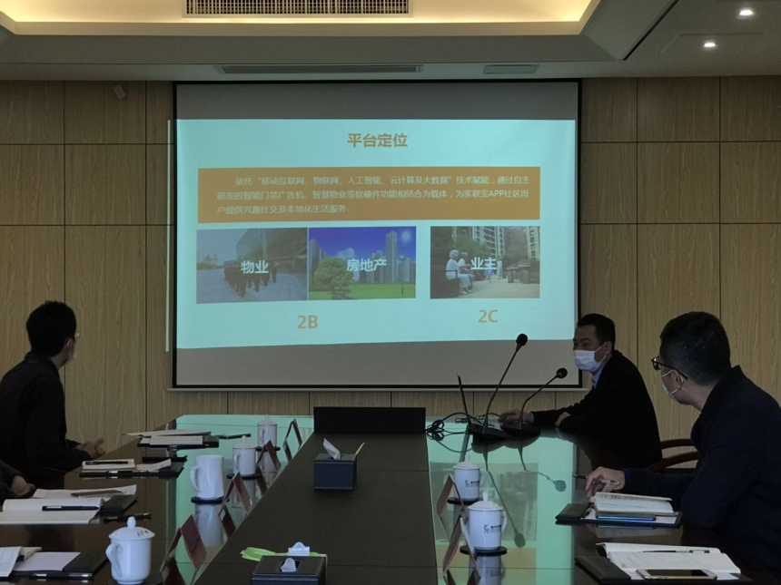 总经理李新洪介绍了集团“333工程”。家联宝CEO林国阳详细介绍了家联宝企业情况、平台建设、运营模式及发展现状。双方就企业发展特点、科技服务合作、社区食材配送方式等进行了深入的交谈,达成初步合作意向。